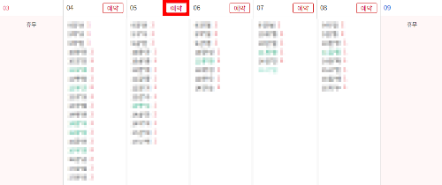 2. 해당 지역의 지점들이 화면에 나옵니다. 가고 싶은 정비소의 "정비예약" 버튼을 누르면, 예약 달력이 나옵니다. 예약이 꽉 찬 날짜에는 예약 버튼이 활성화 안되어 있으며, 예약이 가능한 날짜에만 예약 버튼이 활성화 되어 있음을 참고하여, 예약하고 싶은 날짜에 "예약" 버튼을 누릅니다.